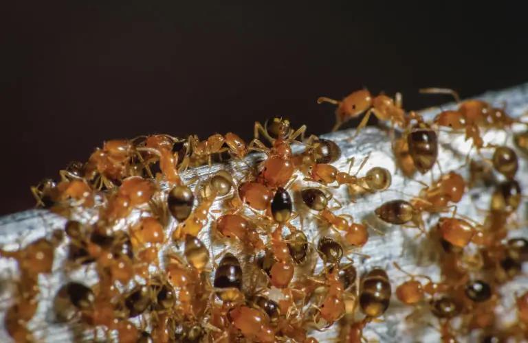 Singapore Ants are more easily distinguished, with a yellow body and dark brown/black abdomen. These ants have become well adapted to humans and can be found inside homes where there are sugary or protein-rich foods readily available. Singapore Ants have been known to cause damage to households by chewing through fabric, insulation, electrical appliances and rubber.